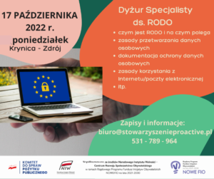 Osoby chcące skorzystać z poradnictwa prosimy o wcześniejszy kontakt telefoniczny pod nr 531 789 964 lub e-mailowy biuro@stowarzyszenieproactive.pl w celu ustalenia godziny konsultacji