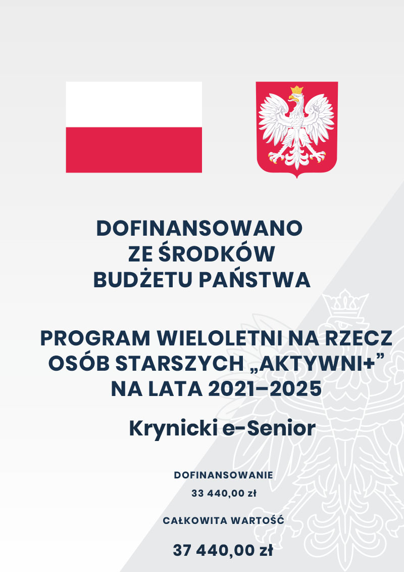 Projekt przygotowany w odpowiedzi na potrzeby seniorów dot. wielowymiarowej edukacji cyfrowej i wkluczający osoby starsze z gminy Krynica-Zdrój w świat cyfrowy dający im umiejętności do swobodnego i bezpiecznego poruszania się po internecie oraz korzystania z