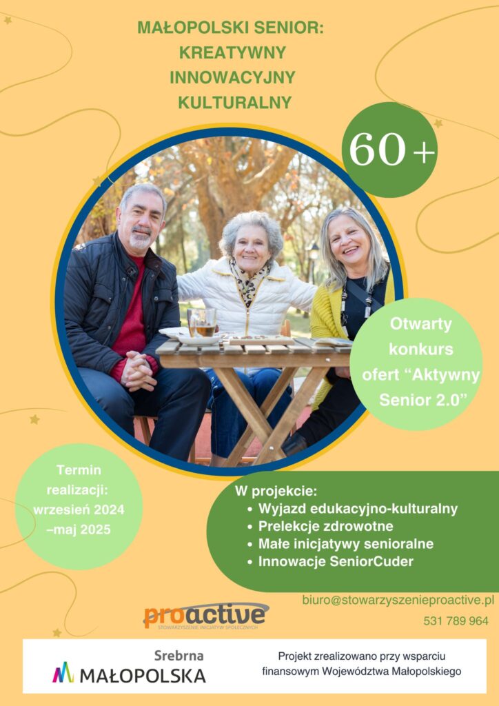 Projekt „Małopolski Senior: Kreatywny – Innowacyjny – Kulturalny” jest realizowany przy wsparciu finansowym Województwa Małopolskiego. Co ważne, to sami seniorzy-wolontariusze są autorami projektu i aktywnie uczestniczą w jego realizacji