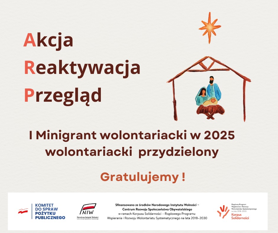 Pierwszy w 2025 grant na autorskie inicjatywy wolontariackie w wysokości 1300 zł został przydzielony. W ramach zadania „Akcja Reaktywacja Przegląd” zadbano, aby wolontariusze mogli zaprezentować swoje umiejętności, wykorzystać swój potencjał osobowy, zwiększyć swoje umiejętności i zainwestować w samego siebie, jednocześnie dzieląc się swoim czasem na rzecz dobra innych