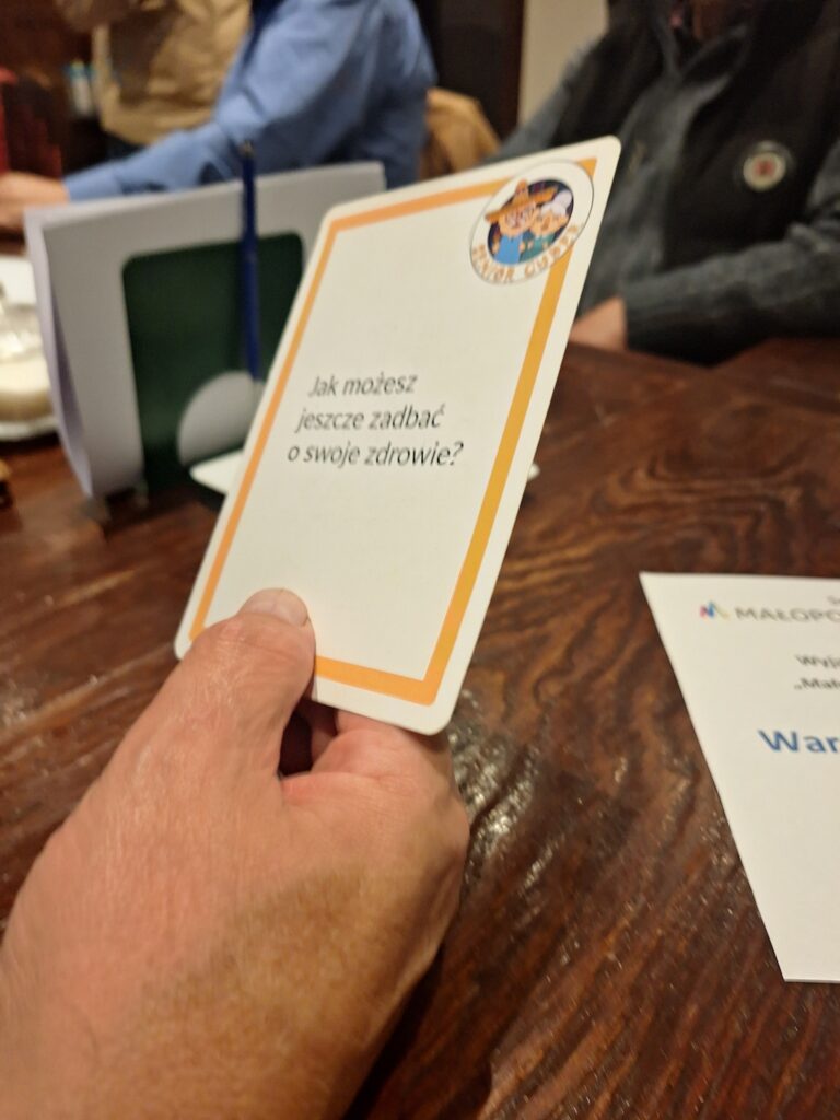 Uczestnicy projektu „Małopolski Senior: Kreatywny- innowacyjny- kulturalny” odbyli wyjazd do Ojcowskiego Parku Narodowego, gdzie w niezwykłej scenerii Willa PTTK ZOSIA – Noclegi w Ojcowie zorganizowano warsztaty z wykorzystaniem innowacyjnej gry „CUDER Senior – gra o sens życia”. Celem gry rozwojowej przeznaczonej dla osób starszych jest zintegrowana poprawa życia osób starszych w obszarze zdrowotnym, intelektualnym, duchowym, emocjonalnym i społecznym. Spotkanie przy SENIORZE CUDER jest doskonałą okazją do spędzenia wspólnego czasu z innymi osobami, do poznawania siebie i innych, do pogłębiania istniejących relacji i budowania nowych, a także do poprawy jakości życia i do zaspokajania potrzeby bycia ważnym i potrzebnym.